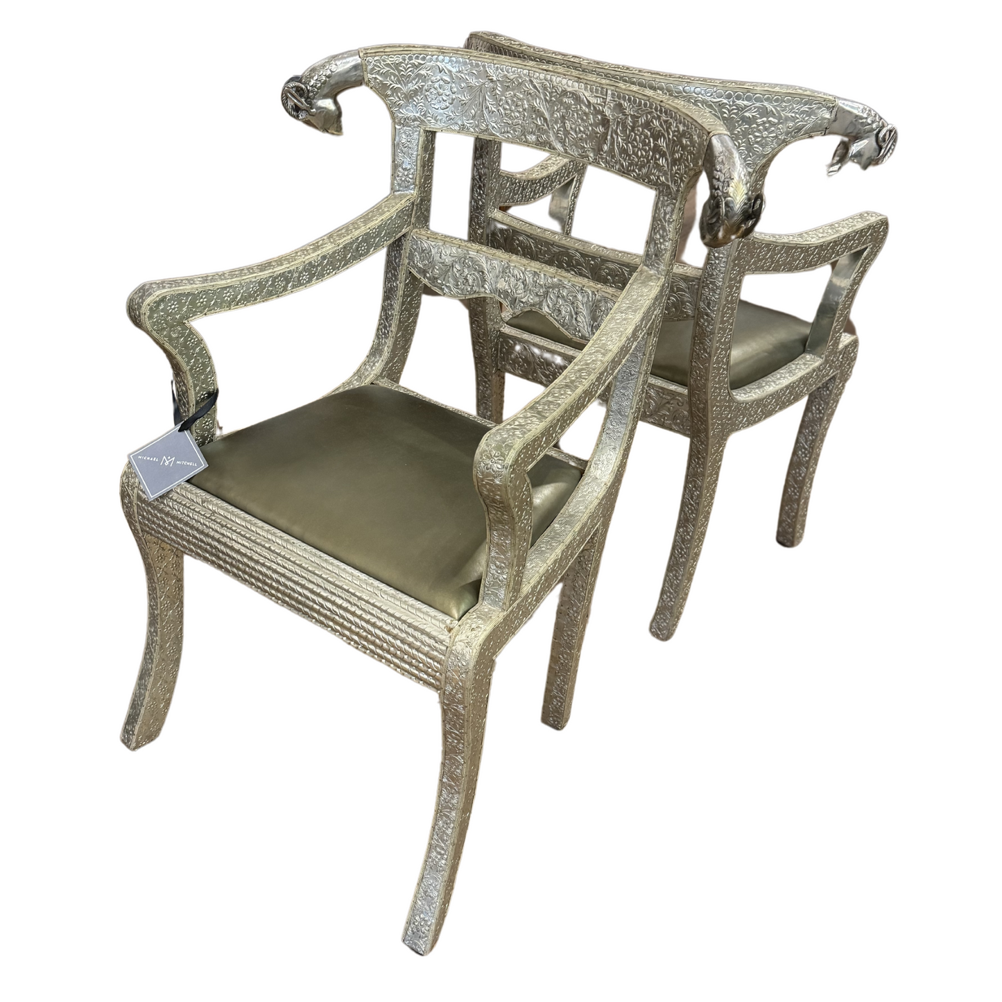 Anglo-Indian Silvered Wrapped Clad Side Chairs, Pair