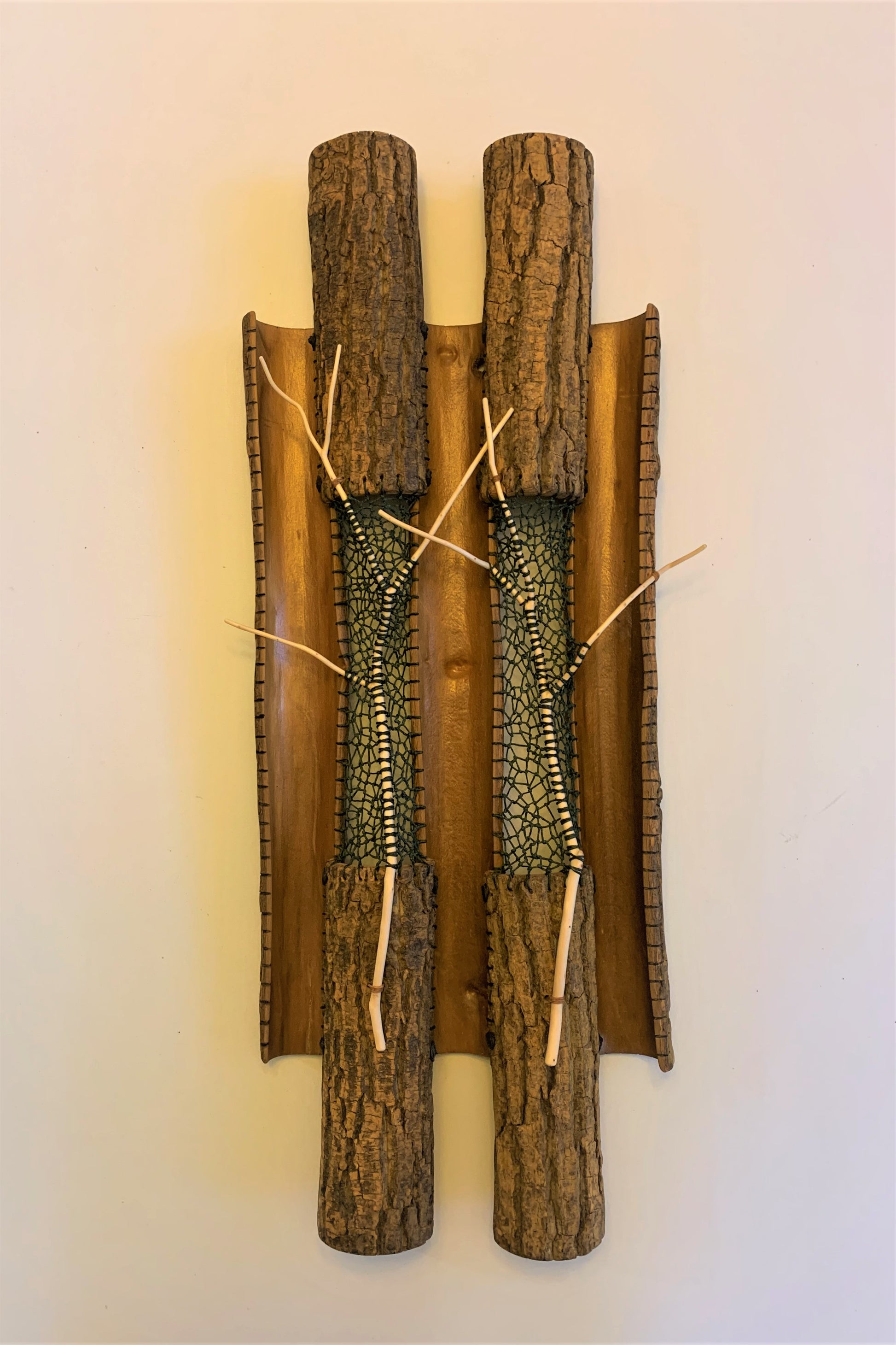Kim Keats, poplar bark, linen thread, and hemlock twigs