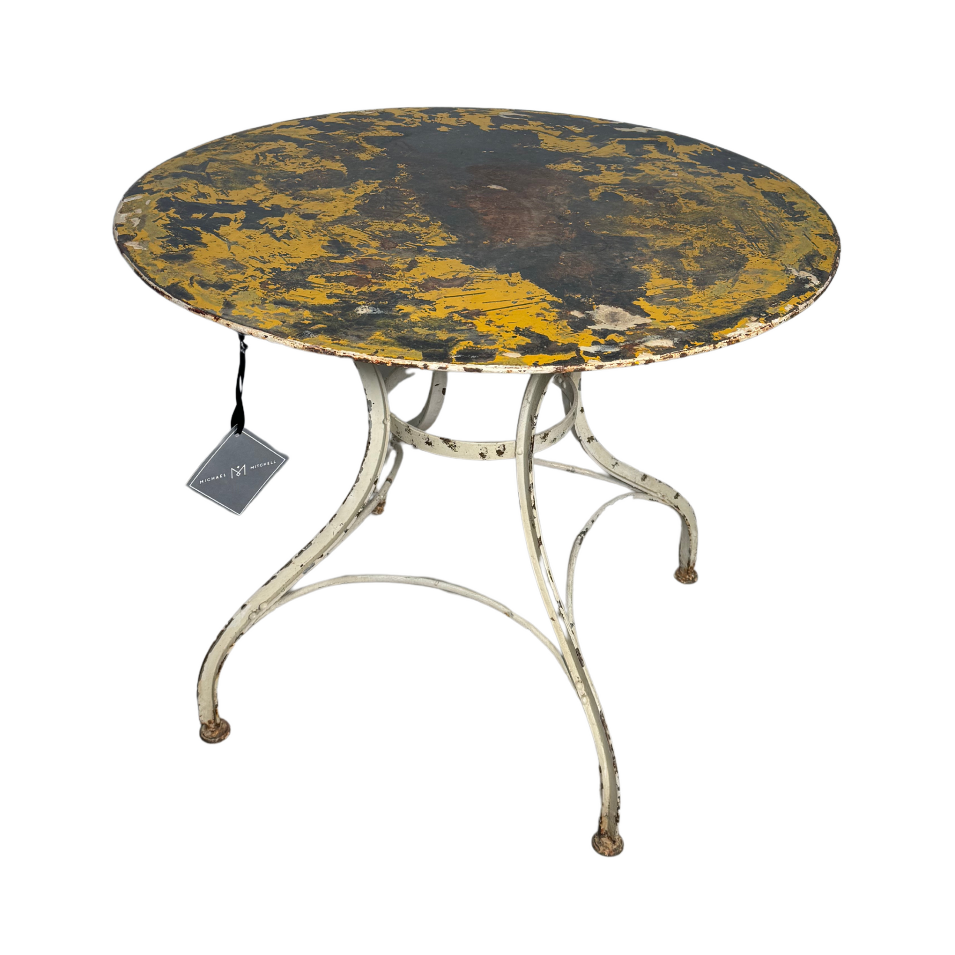 35.5dx 29.5h, South of France, 1930’s wrought iron, patina, yellow and white